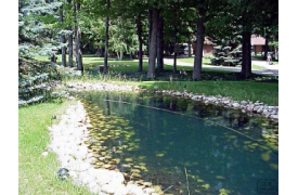 Ed Estelle wanted to create a natural looking water garden at the entrance to his home near Gaylord, Michigan. He had plenty of water from the irrigation system for his potato farm, but the sandy soil would not contain the water.