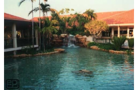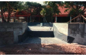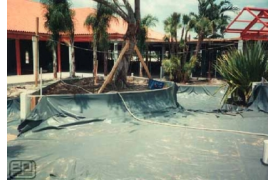 Bob Morris of Rockscapes International created this striking water feature at the Waterside Shops in Naples, Florida using EPI 30 mil PVC. 30 mil PVC panels were custom fabricated by EPI and shipped to the project site in Florida. Shot Crete was placed over the PVC geomembrane to create the free form water feature's containment.
