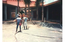 PVC was adhered to the concrete walls to make a watertight transition from the bottom of the water feature to the vertical concrete walls surrounding viewing areas. The completed water feature adds beauty and value to this retail facility.