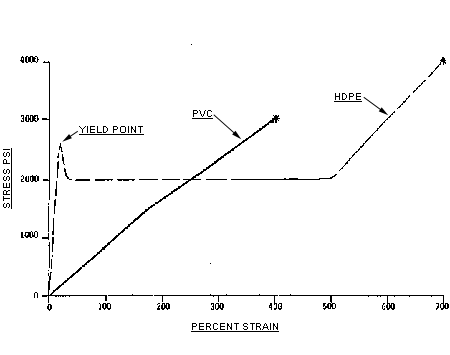 PVC will conform to geometrical profiles much more readily than HDPE. HDPE has a higher puncture stress but a lower puncture strain than PVC.